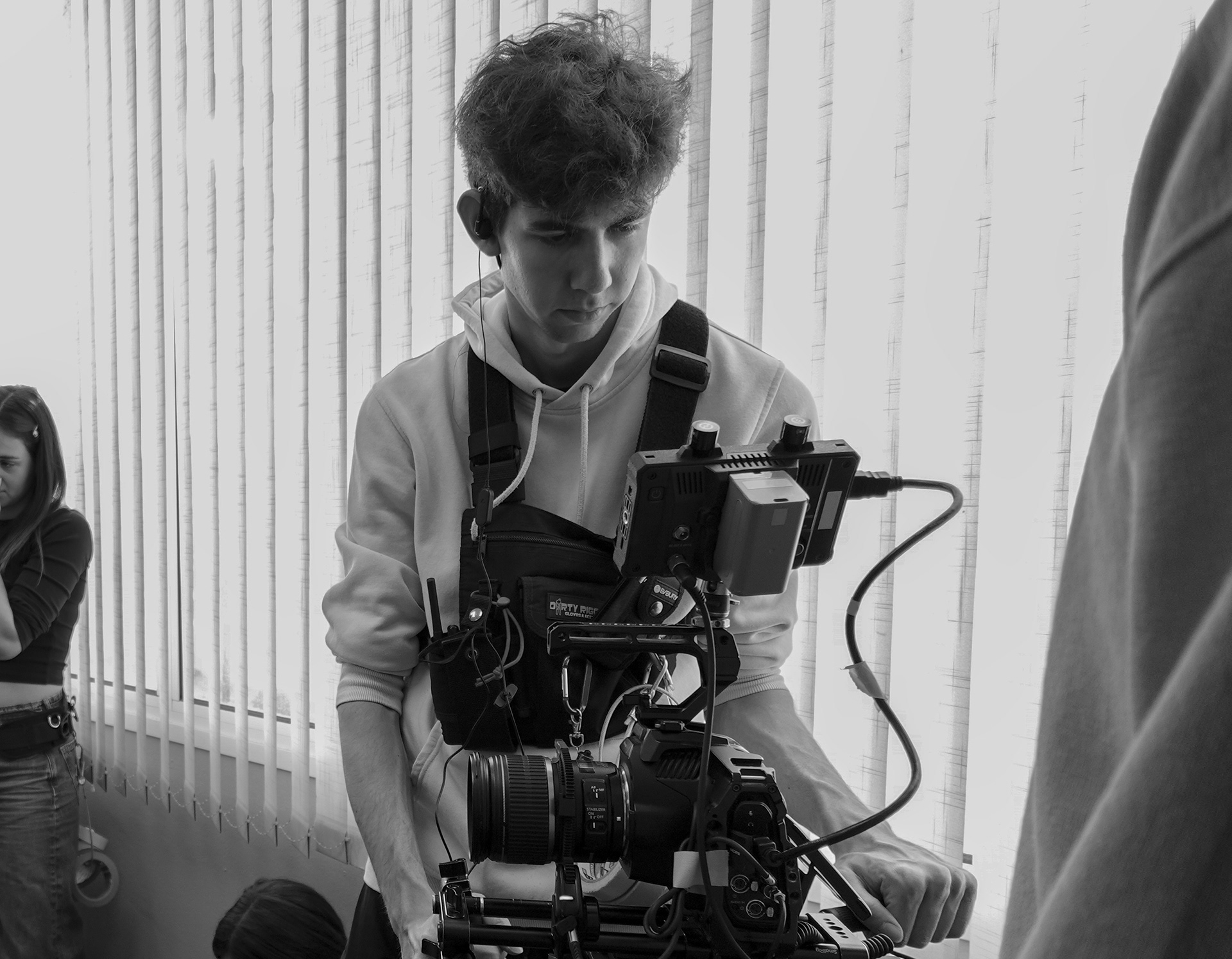 Me estoy formando en la ESCAC (Escola Superior de Cinema i Audiovisuals de Catalunya). Busco que la cámara y la luz no funcionen por separado, sino que sean una sola herramienta que se alinee con el tono y la intención emocional de cada escena, estando siempre al servicio de la historia que queremos contar.